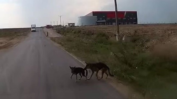 El video fue grabado por un conductor en una carretera. Los dos animales fueron vistos en medio de la vía.
