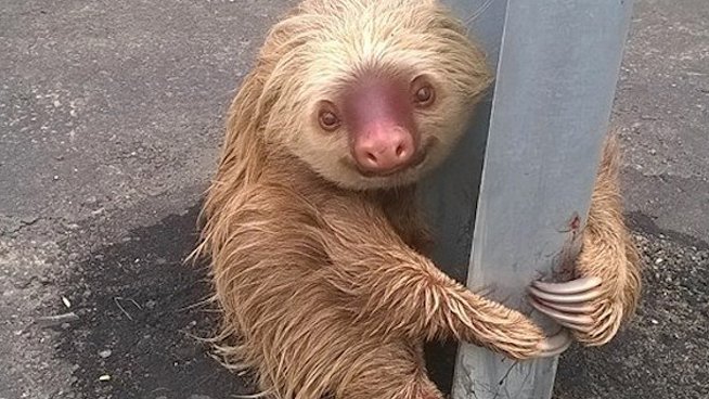Pero detrás de este oso perezoso existe una historia. Este adorable oso perezoso fue encontrado en la ciudad Los Rios en Ecuador. El animalito intentaba cruzar la autopista pero le dio pánico y se quedó varado en el centro agarrado muy fuerte a una vara de metal.